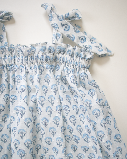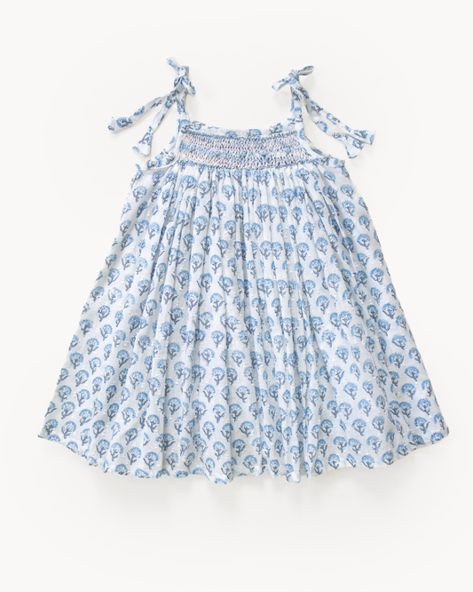 Blue Blockprint Smock Dress – Hand Smocked Jaipur Cotton