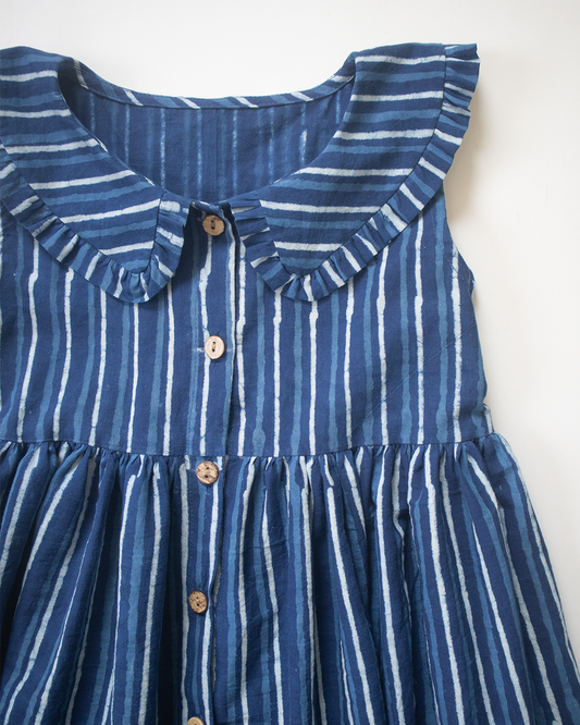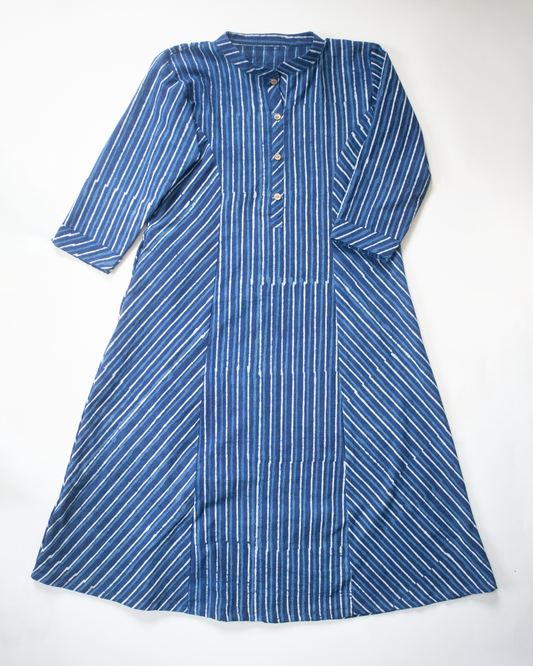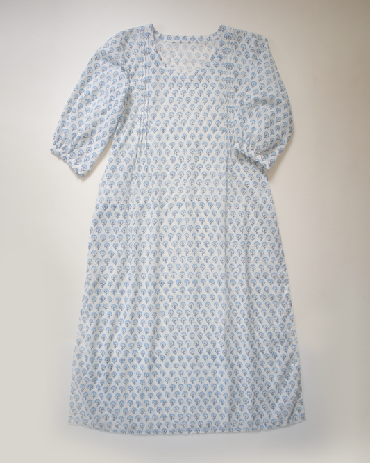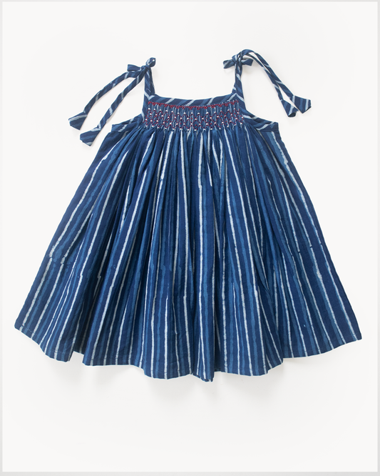Indigo Blockprint Smock Dress – Hand-Smocked Jaipur Cotton