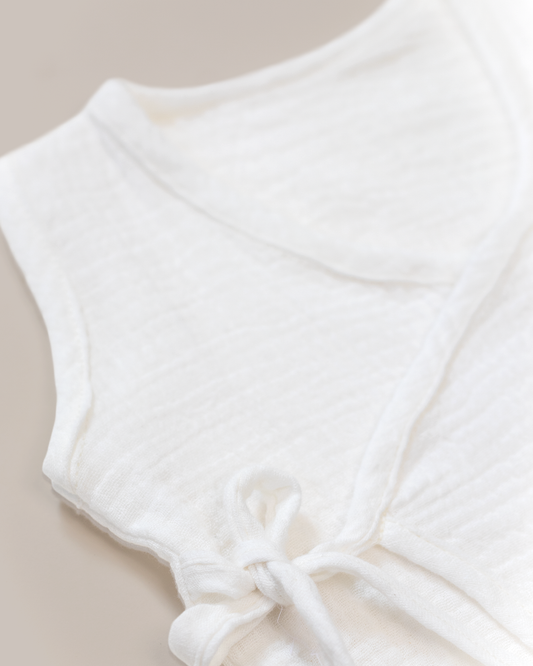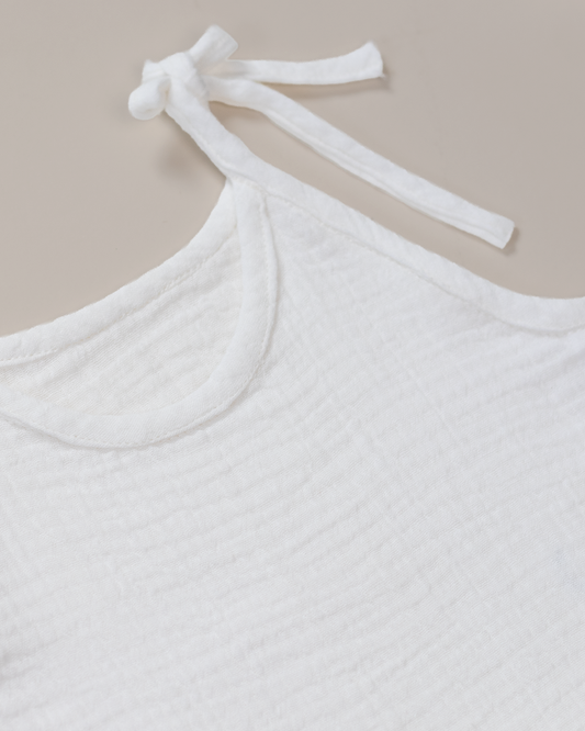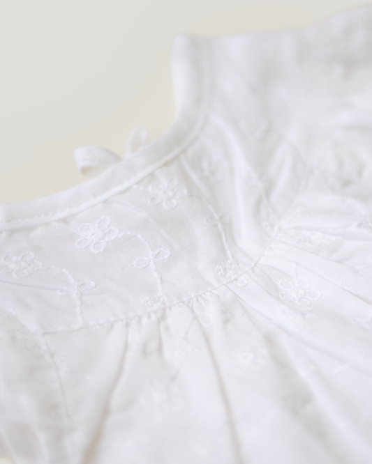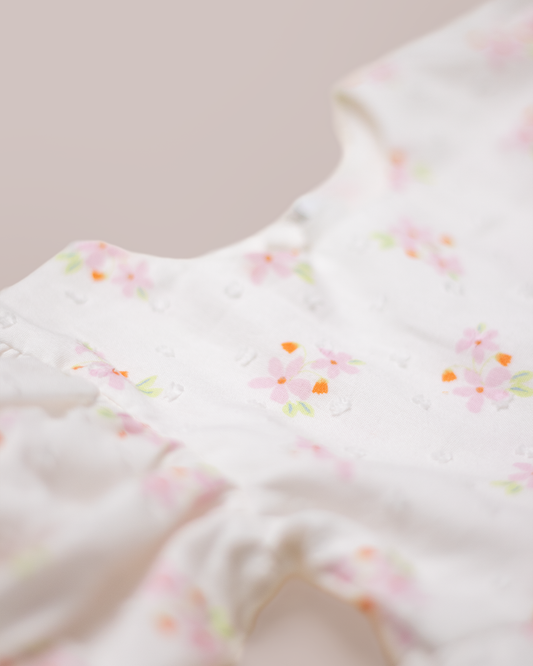 Pearl Cotton Dress for Baby Girls – White Floral Puff Sleeve Dress | MyBud