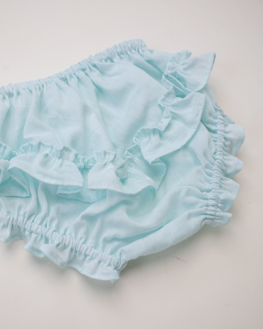 Light and airy like a seaside morning, the Breeze Diaper Cover is made from smooth cotton in a soft aqua tone. The fluttery frills and breathable fabric keep your baby cool and comfy for every little adventure.