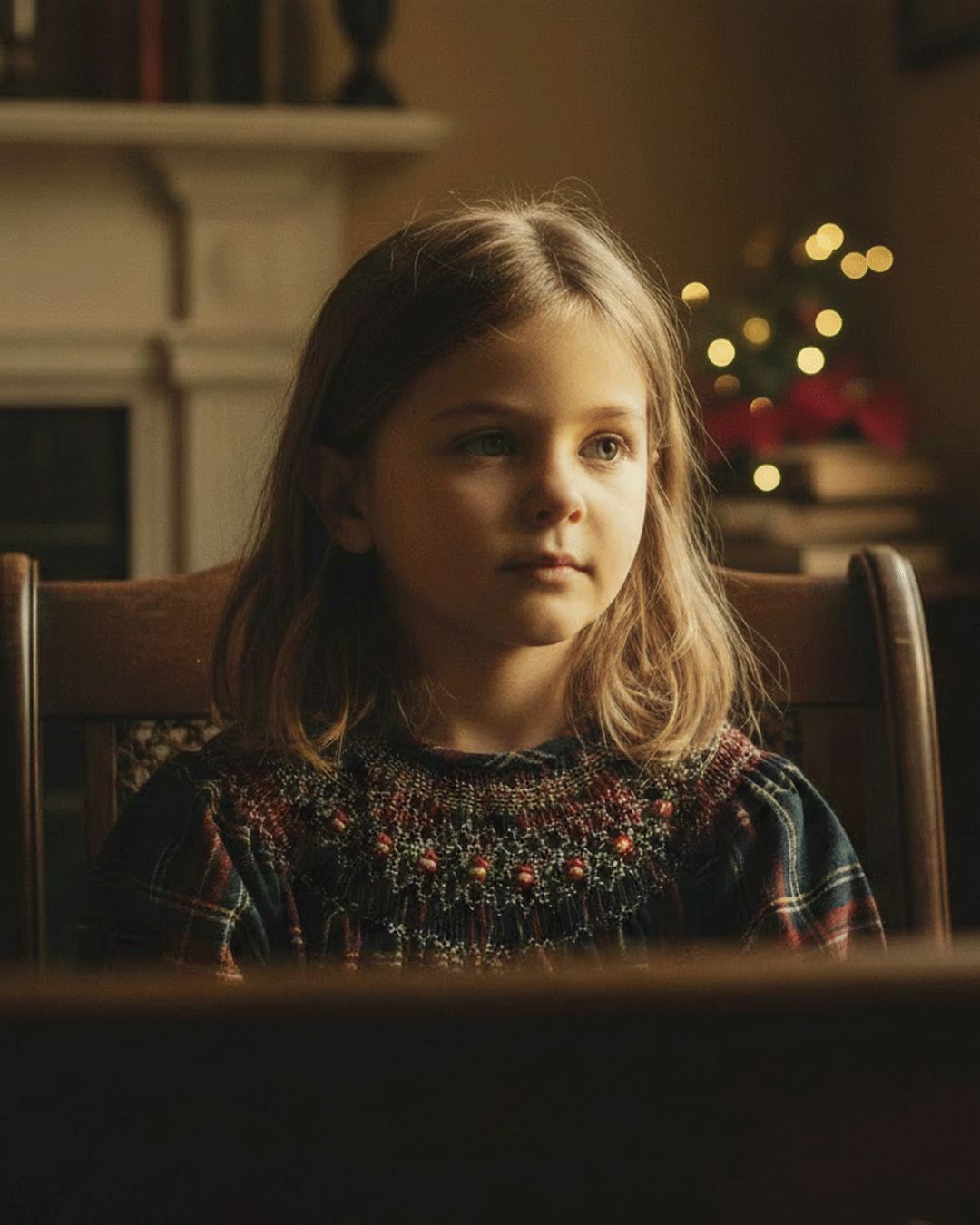 Designed in soft cotton with a classic red-green check, this dress features hand-smocked embroidery across the yoke with gentle seasonal touches. The fuller silhouette and gathered sleeves bring a cosy charm, keeping little ones comfortable through every festive moment.